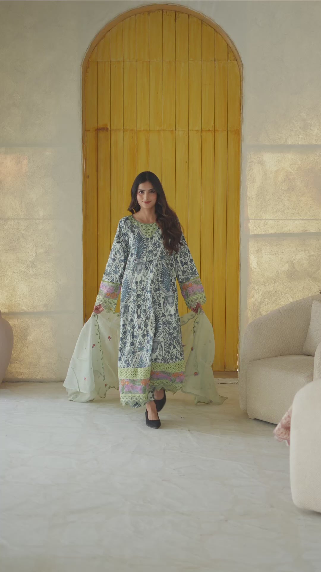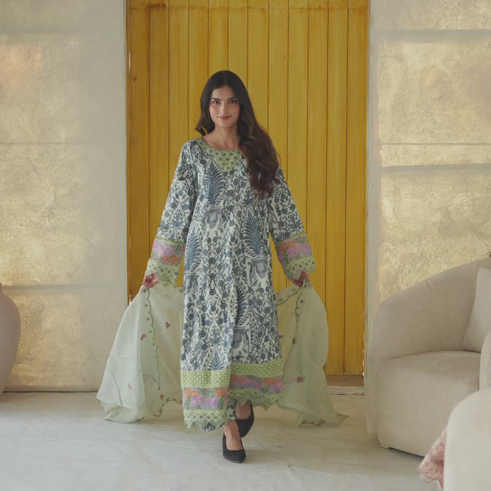 • Beautiful printed khaddar long frock with intricate patterns